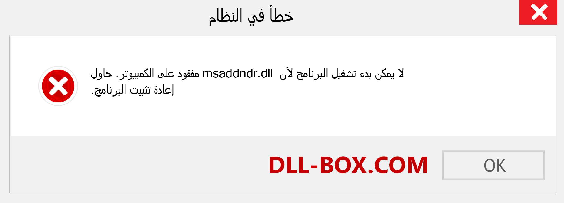 1. لا يمكن بدء تشغيل البرنامج لأن msaddndr.dll مفقود من جهاز الكمبيوتر الخاص بك. الرجاء إعادة تحميل البرنامج \ التطبيق لعلاج هذه المشكلة.