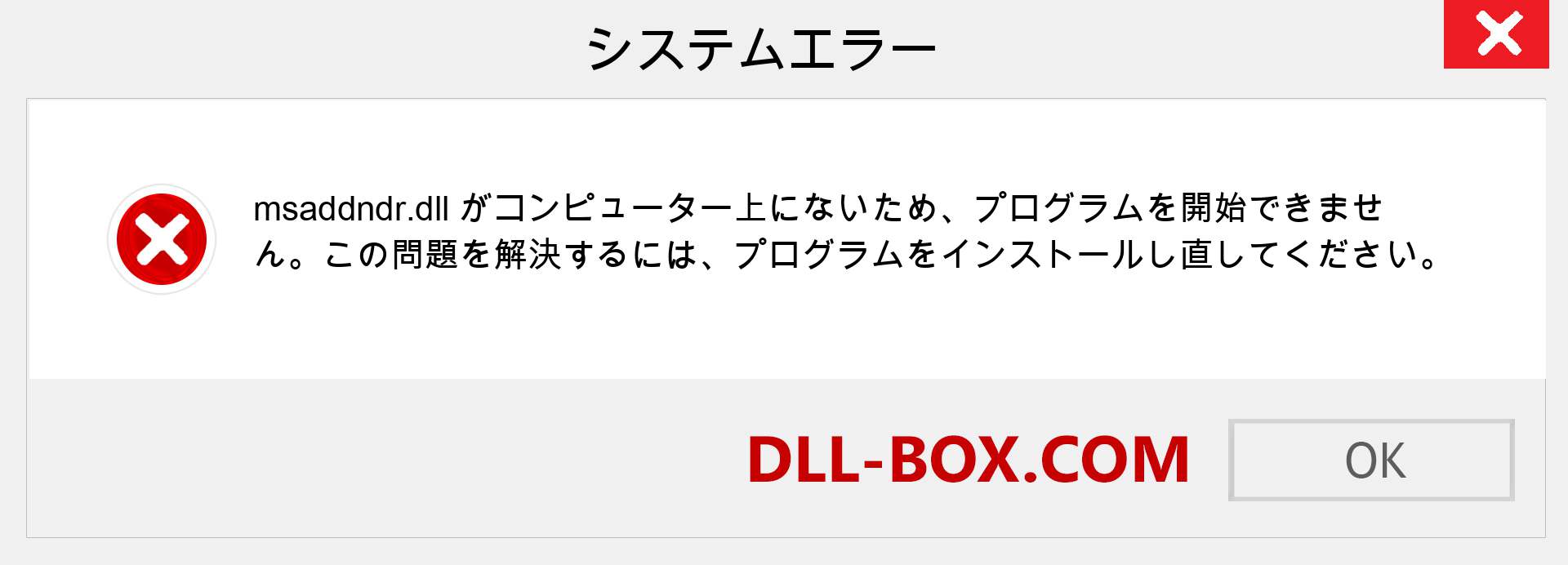 msaddndr.dllに関連するエラーは、いくつかの異なる理由で発生する可能性があります。 たとえば、障害のあるアプリケーションmsaddndr.dllが削除または置き忘れられ、PCに存在する悪意のあるソフトウェアまたは破損したWindowsレジストリによって破損しています。